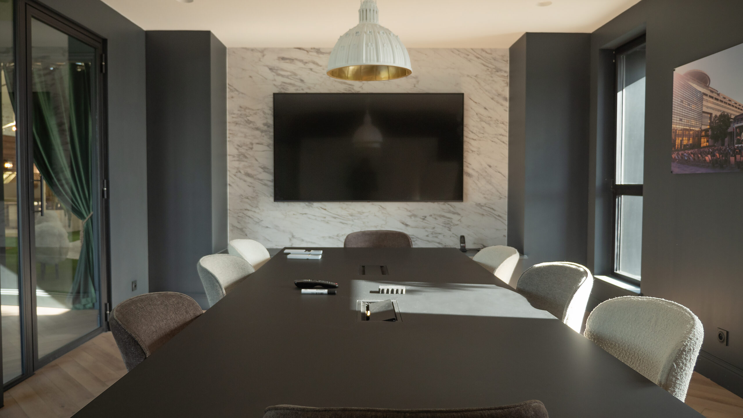 Concentrez-vous sur l’essentiel: salle cosy jusqu’à 10 personnes, mobilier confortable, TV + connectique.